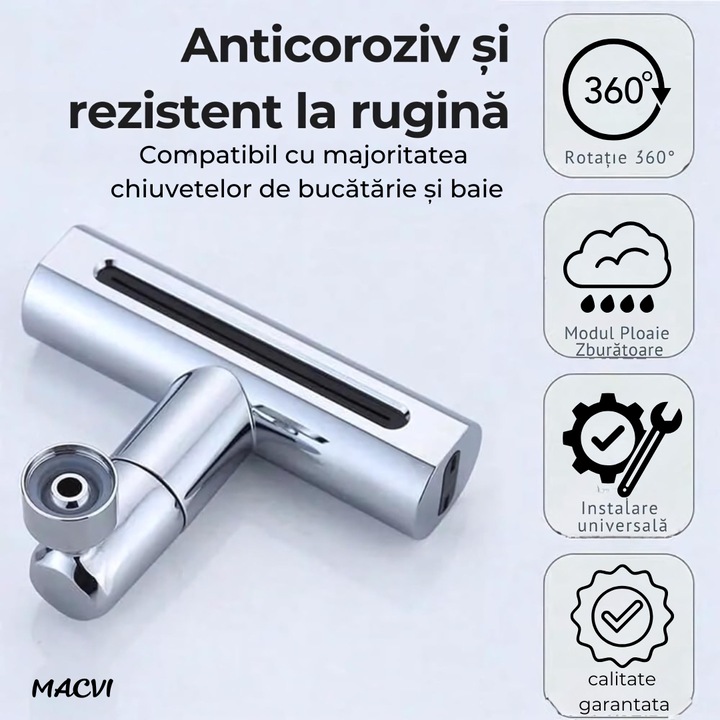 Cap de robinet cu filtru de apa Macvi® pentru purificare, usor de instalat, material durabil