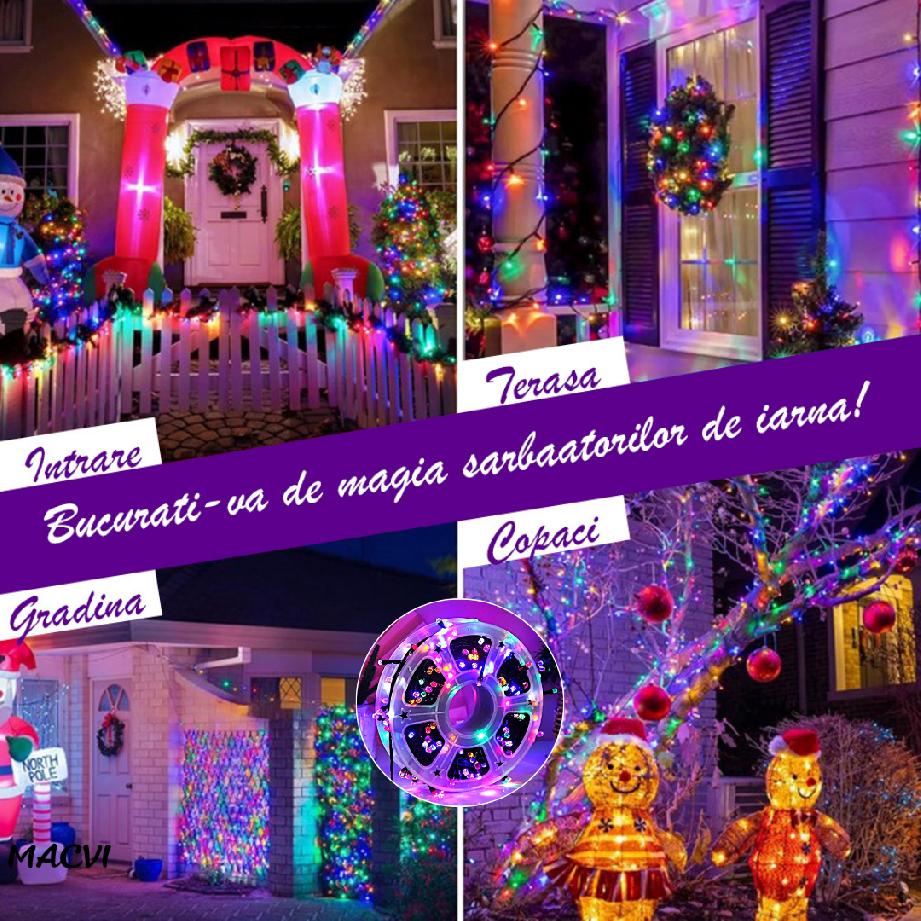 Creează o atmosferă festivă de neuitat cu instalația luminoasă LED Macvi® de 100M, rezistentă și versatilă, ideală pentru toate momentele speciale din sezonul sărbătorilor!