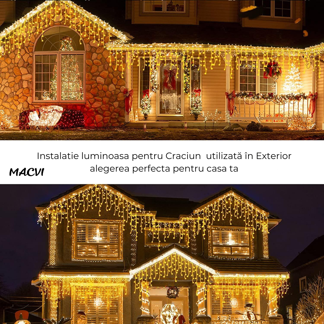 Instalatie luminoasa Macvi® 100 LED-uri, 10 metri, pentru decor de Craciun, rezistenta si economica