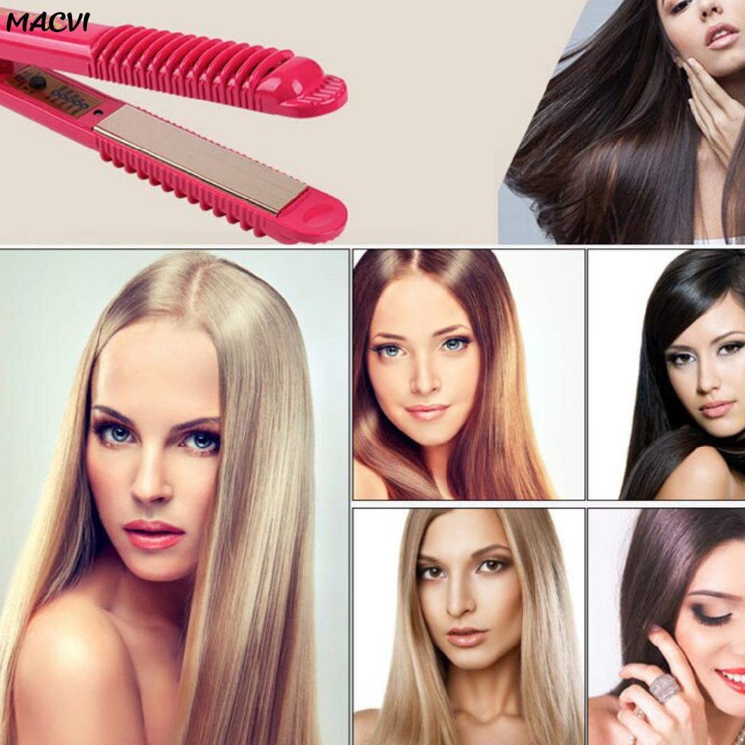 Placa pentru Indreptat Parul Macvi® cu Placi Ceramice, 4 Trepte de Temperatura, Roz, Alimentare la Retea