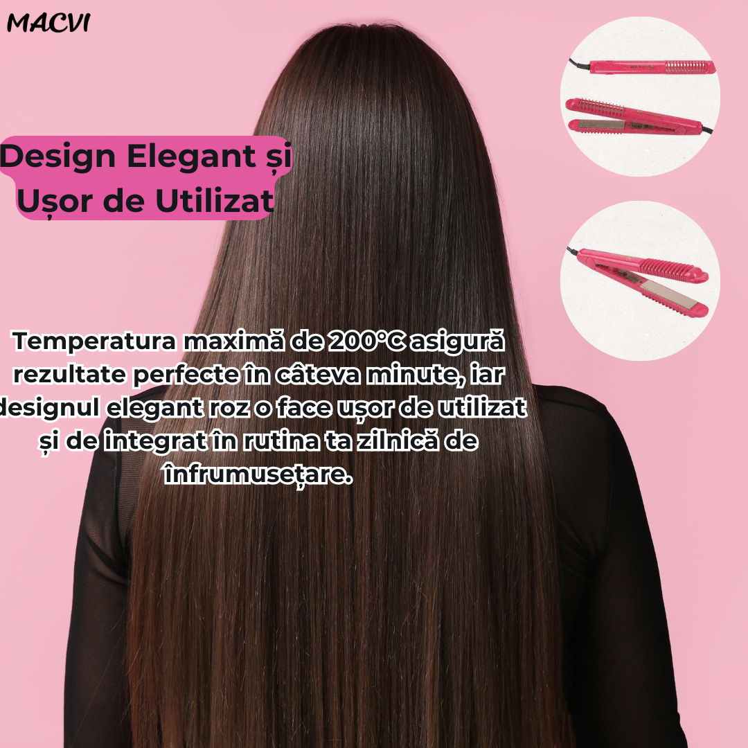 Placa de Par Macvi® 3 Functii, Protectie pentru Firul de Par, Ceramica, Roz